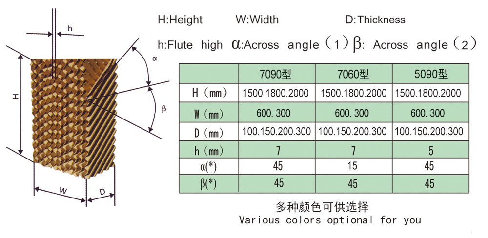 >> 濕簾規(guī)格及尺寸說明